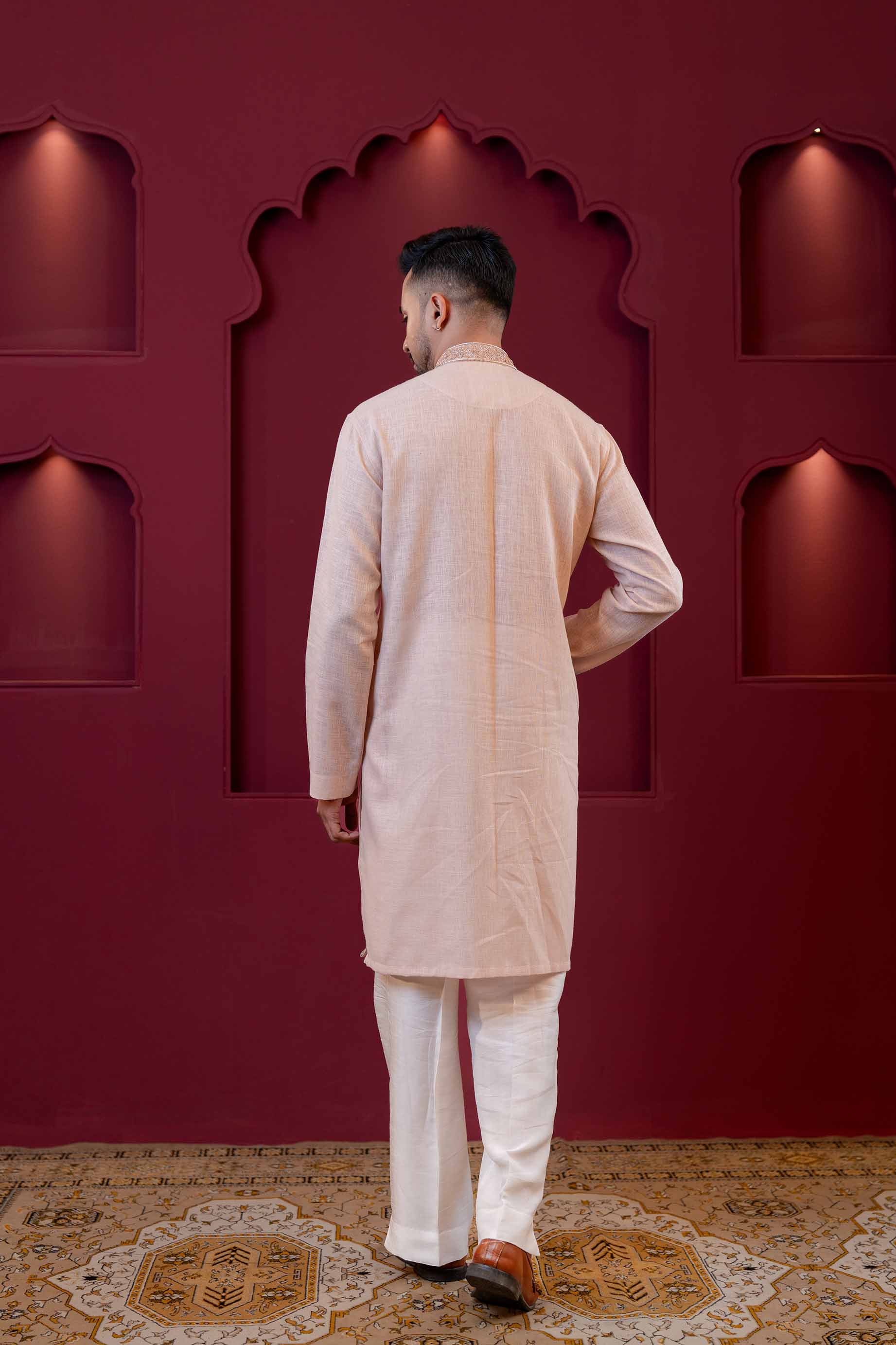 Be the first to review “Light Coral Round Neck Panjabi With Zardozi Work.”